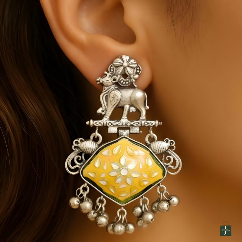 Royal nandi motif on top with enamel square center nd ghungroo drops