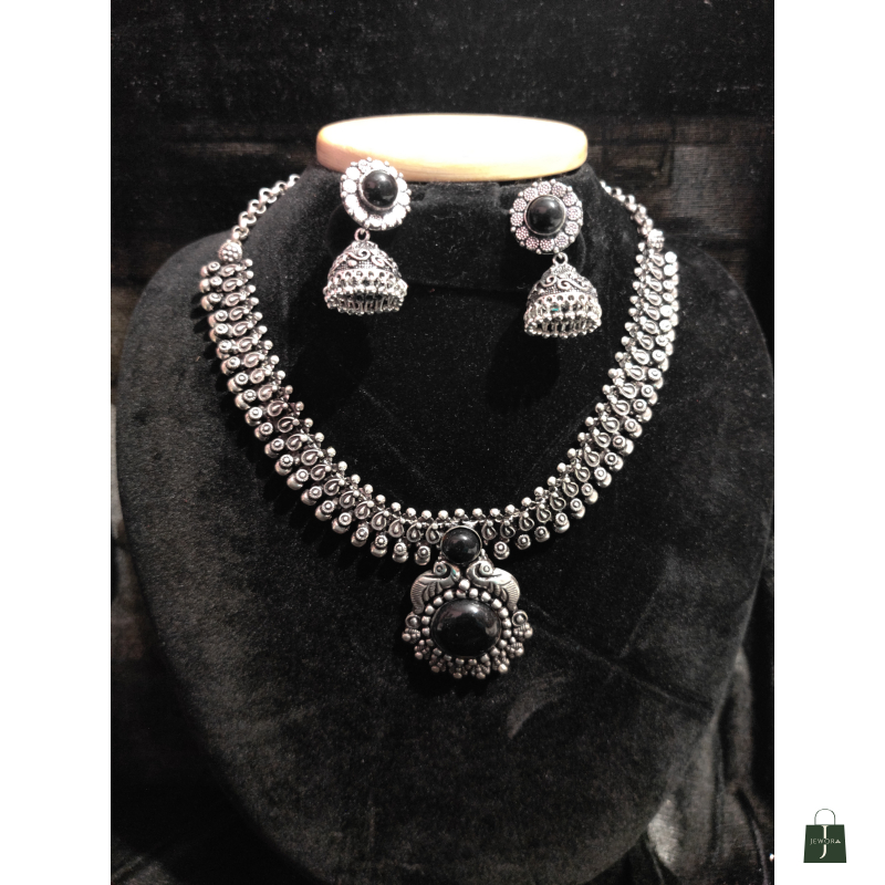 Oxidized black necklace with earrings