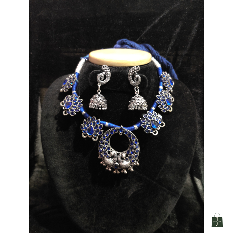 Oxidized blue handmade necklace with earrings