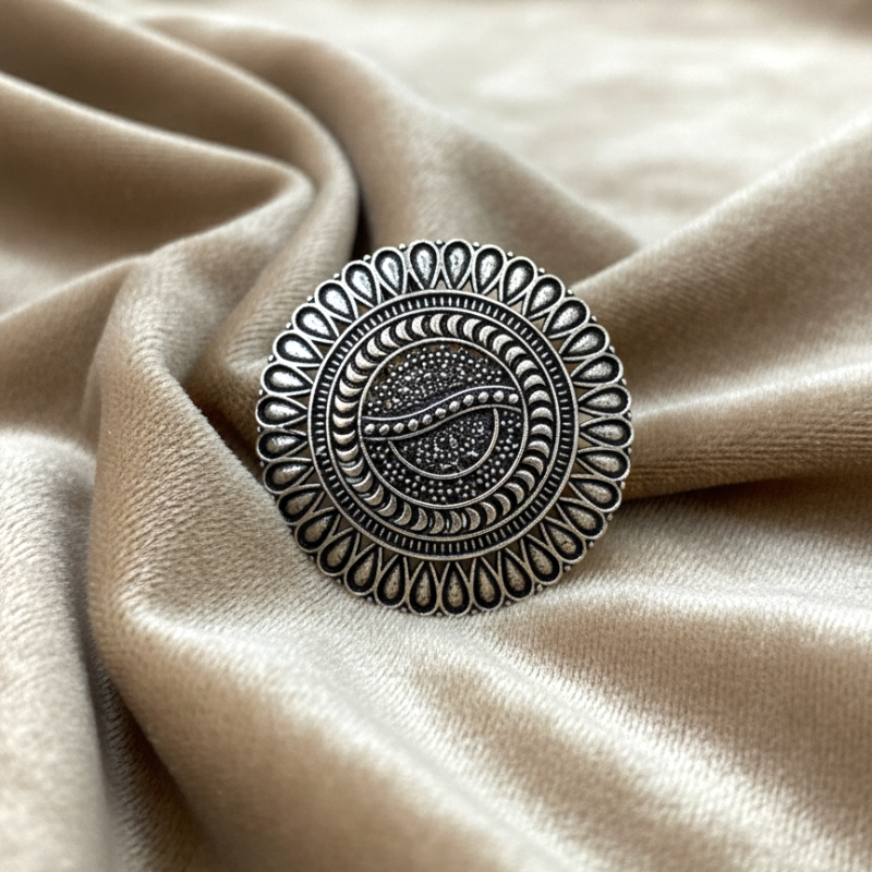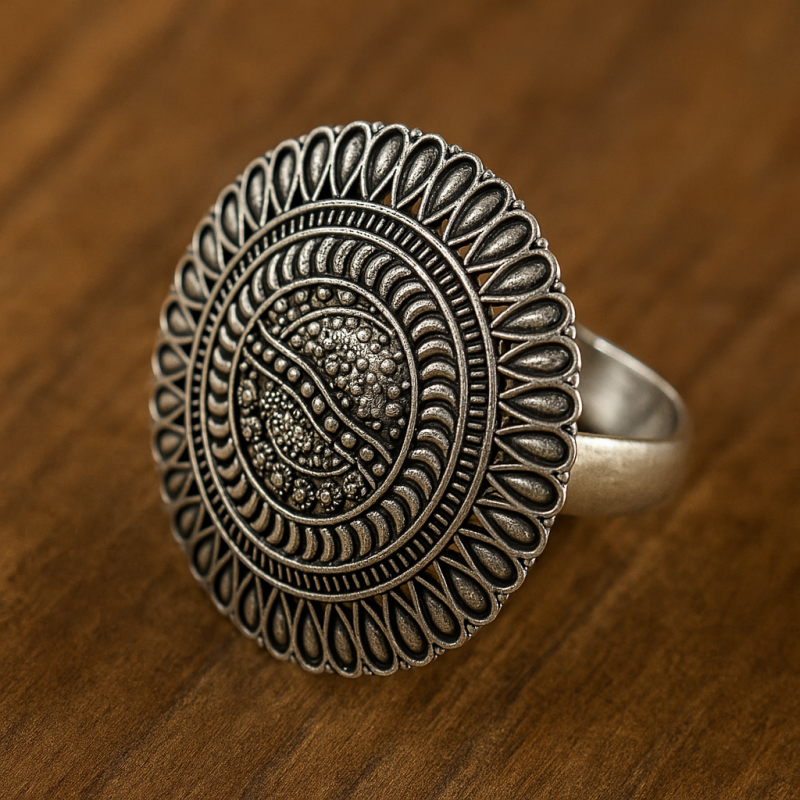 Designed to be eye-catching yet lightweight, this cocktail ring is a must-have addition to any oxidized jewellery collection, reflecting timeless charm and handcrafted finesse.