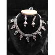 Oxidized flower charm necklace with earrings