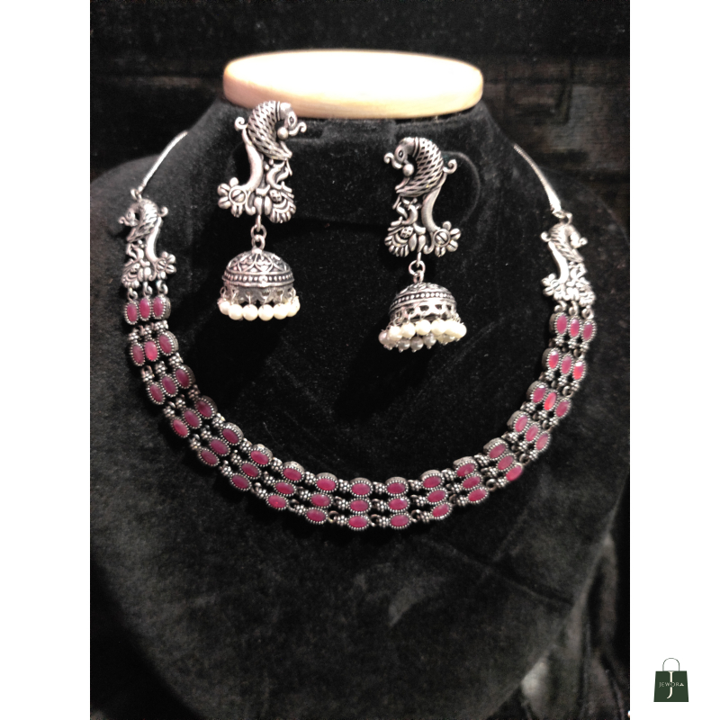 Oxidized ruby necklace with earrings