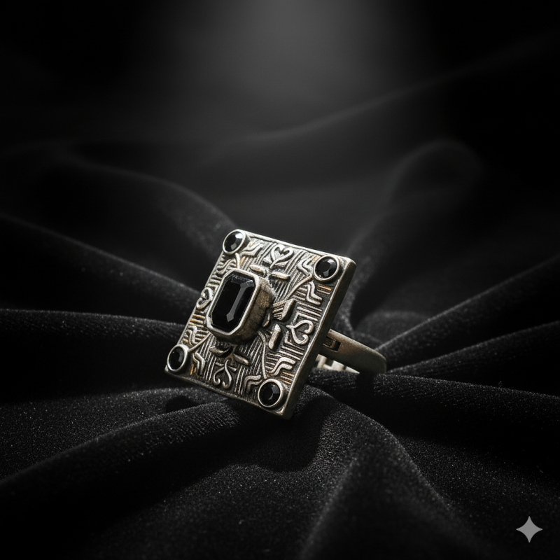 Oxidized Square Stone Cocktail Ring is a bold and artistic accessory that blends traditional charm with a modern geometric design. The square-shaped frame is crafted with intricate oxidized patterns and features a prominent centerpiece stone, accented by smaller stones on the corners. Its antique finish highlights the fine detailing, making it a unique addition to any jewellery collection.