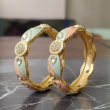 Intricate Meenakari Work: The bangles feature beautiful hand-painted enamel in subtle Pastel Pink and Mint Green/Aqua tones, a delicate twist on classic Indian artistry.