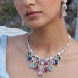 Add timeless elegance to your festive look with this Pastel Multicolor American Diamond Necklace Set, featuring a beautifully crafted necklace adorned with teardrop-shaped pastel stones in shades of mint green, blush pink, ruby red, emerald green, and midnight blue. The silver-toned AD framework enhances the brilliance and gives the set a graceful, luxurious finish.