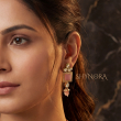 Delicate teardrop kundan accents and pastel bead danglers add graceful movement and charm, making the piece both elegant and eye-catching. Paired with matching drop earrings, this set is perfect for creating a regal yet soft aesthetic.