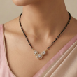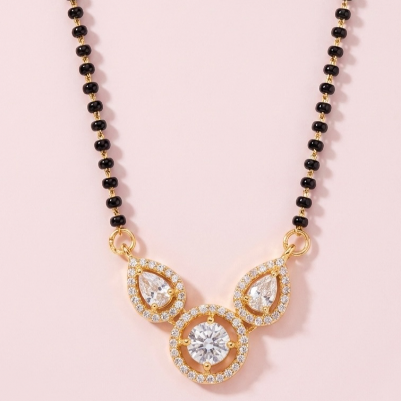 Pavitra Bandhan symbolizes the purity and depth of a sacred marital bond. Traditionally, the black beads are believed to absorb negative energies and protect the relationship, while the gold-polished setting signifies prosperity and stability. Enhanced with American diamonds, this mangalsutra carries both emotional significance and timeless elegance for everyday wear.