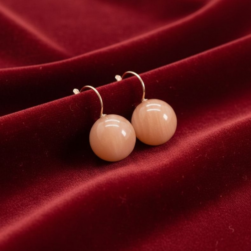 Add a touch of natural elegance to your style with these beautiful Peach Moonstone Sphere Drop Earrings. Featuring smooth, polished gemstone balls suspended from rose gold hook wires, these earrings offer a perfect blend of minimalism and femininity. The warm peach tones of the Moonstone or Sunstone create a soft glow that complements all skin tones and outfits.