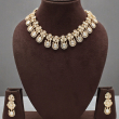 The symmetrical drop detailing gives the necklace a soft yet statement look, perfect for brides, wedding functions, receptions, and festive occasions. Paired with elegant long drop earrings, this set adds timeless charm and sophistication to sarees, lehengas, and ethnic gowns.
