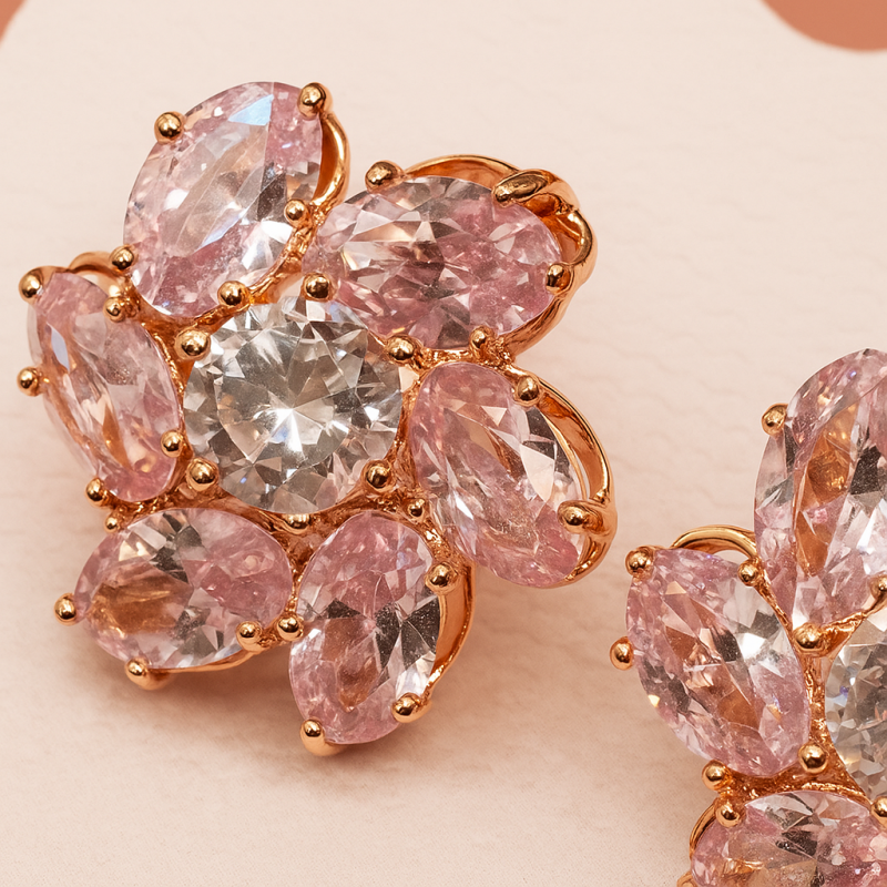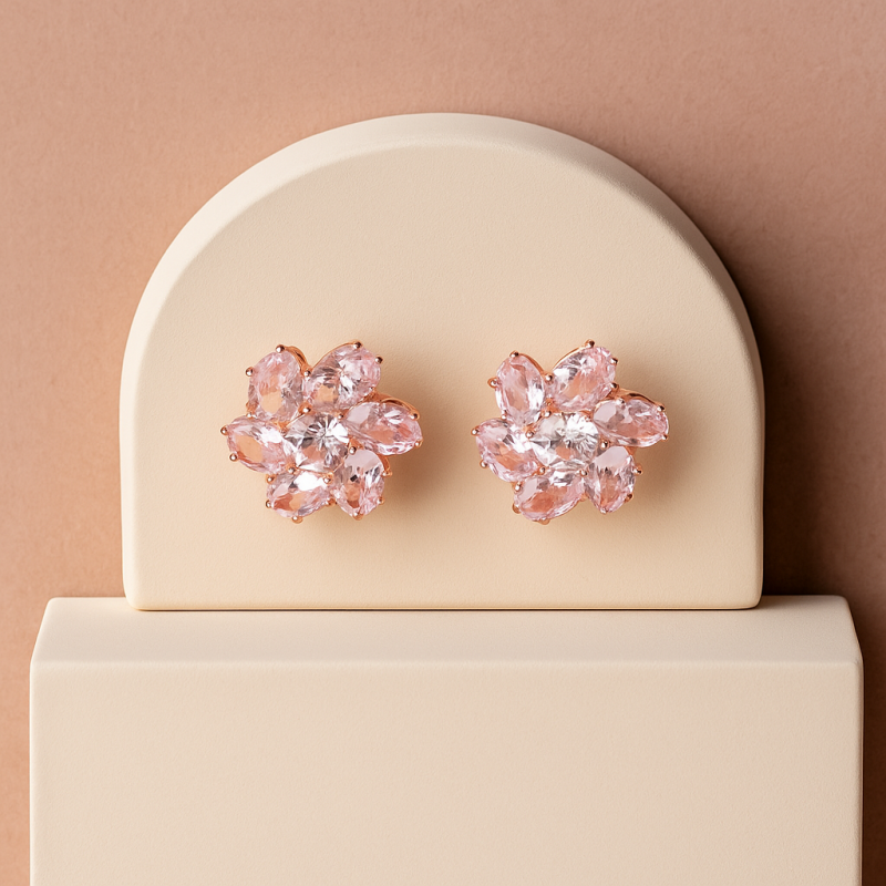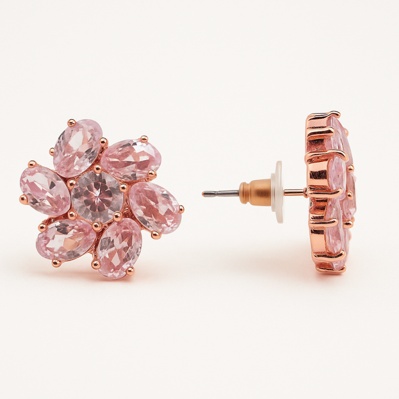 Add a soft yet dazzling touch to your look with these Pink Floral Crystal Stud Earrings. Designed with a delicate floral arrangement, each petal is made of shimmering light-pink crystals that catch the light beautifully. The central clear crystal adds a hint of sparkle, making these earrings perfect for both day and evening wear. Set in a rose gold-tone base, these studs are lightweight and comfortable, ideal for pairing with casual outfits, festive attire, or even bridal wear for a subtle, romantic accent. Whether itβs for a special occasion or daily elegance, these earrings bring just the right amount of charm and sophistication.