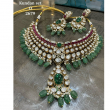 Step into timeless elegance with this Opulent Kundan Necklace Set, DesiStudio has designed for women who desire grandeur with grace. Adorned with dazzling polki kundan stones, rich ruby accents, and luxurious emerald-green drops, this masterpiece radiates regal charm from every angle.