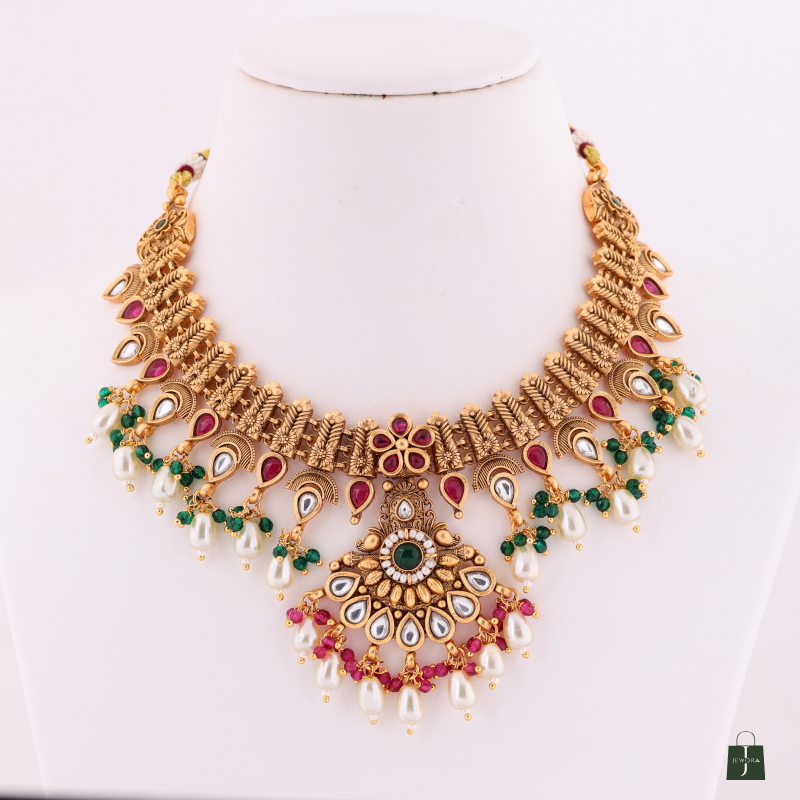 This stunning necklace set pair with Earring and bindi. crafted to reflect the grandeur of timeless Indian heritage. Perfect for making every occasion unforgettable