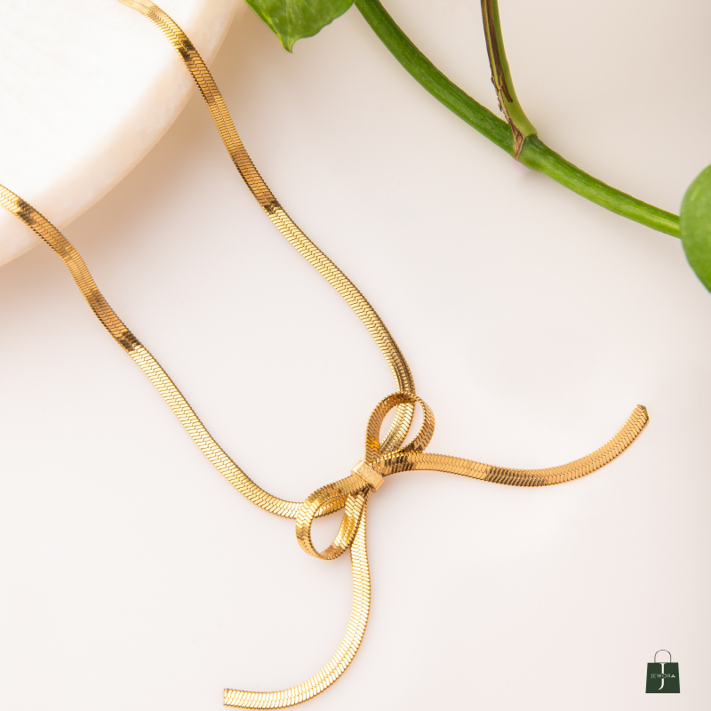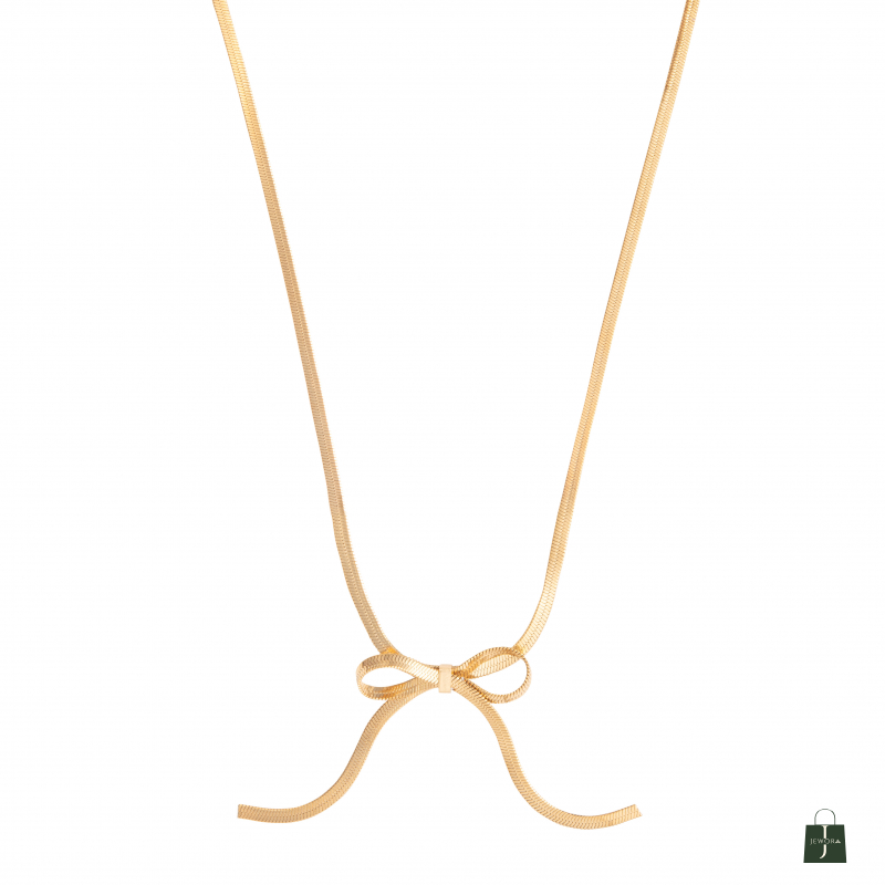 Add a touch of feminine charm with the Rachel Anti-Tarnish Bow Chain. Featuring a sleek anti-tarnish chain and a delicate bow-shaped pendant, this necklace brings elegance to any outfit. Finished in gold vermeil polish, it is both lightweight and durable, making it ideal for everyday wear or as a subtle accessory for special occasions.