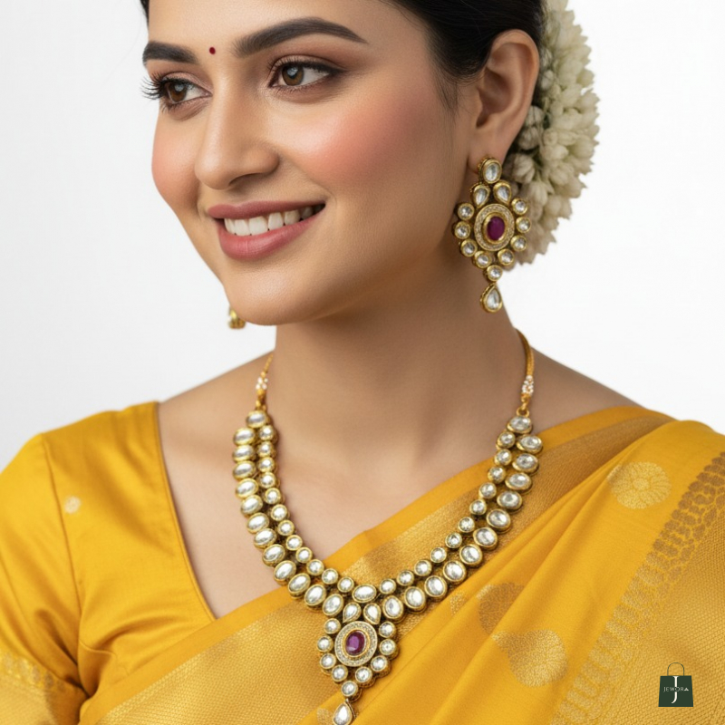 Perfect for weddings, engagement ceremonies, poojas, and festive gatherings, this set complements silk sarees, lehengas, and classic ethnic attire.