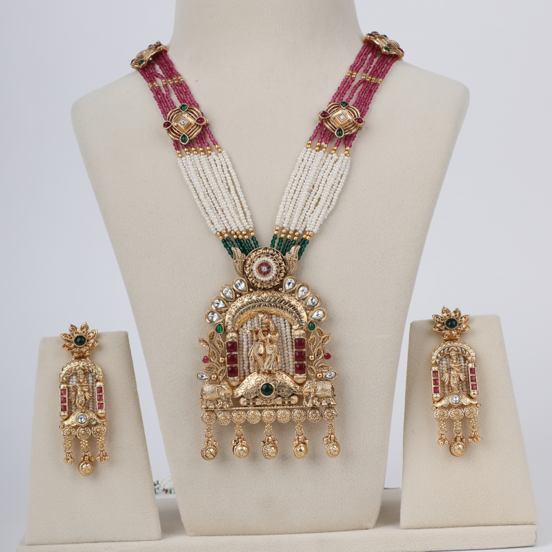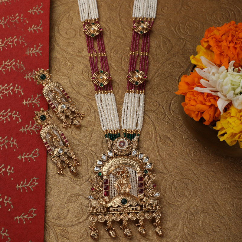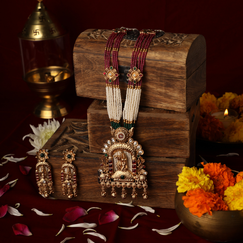 This heritage-inspired set reflects devotion, craftsmanship, and regal charm—ideal for ceremonial and festive occasions.