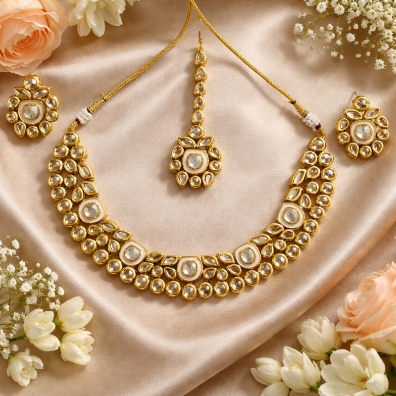 A Garden of Glass: The Kundan stones rest like dewdrops on silk, as pure as the moonlight and smooth as the milk.