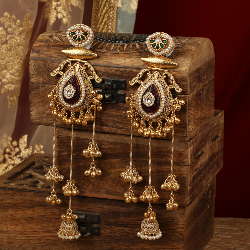 Perfectly balancing sophistication and festive charm, these earrings are ideal for weddings, celebrations, and traditional gatherings where statement jewellery completes the look.