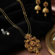 Paired with beautifully crafted jhumka earrings, this set is perfect for bridal wear, festive occasions, pooja ceremonies, and elegant ethnic styling.