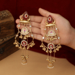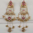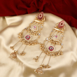 Add a graceful splash of colour to your festive wardrobe with these exquisitely handcrafted long earrings, designed to blend traditional artistry with fluid elegance. The earrings feature a teardrop-shaped stud adorned with soft pink enamel detailing and a ruby-toned accent, creating a refined and feminine appeal.