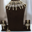 Paired with matching statement earrings and a coordinated maang tikka, this set is perfect for brides who want a classic and regal look for their wedding day or grand festive occasions.