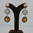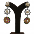 The top square stone stud gives a bold statement look, followed by a delicate floral crystal connector and a traditional round medallion drop. The fusion of antique silver and gold polish enhances the regal appeal, making these earrings perfect for festive and wedding occasions.