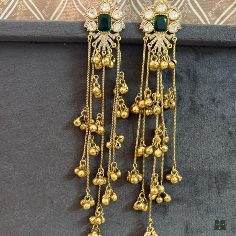 Elevate your ethnic ensemble with these exquisite Artisanal Fusion Earrings. A masterpiece of traditional craftsmanship, these earrings marry the celestial silhouette of the Chandbali with the rhythmic charm of the Jhumka, creating a silhouette that is both majestic and timeless.