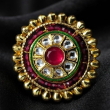 Embrace royal elegance with this beautifully crafted Rajwadi-inspired kundan ring. Designed in a circular chakra pattern, this statement piece features a striking ruby-red center stone surrounded by shimmering kundan stones. The intricate gold beaded border and subtle green enamel accents enhance its traditional charm, making it a perfect blend of heritage and luxury. A true showstopper, this ring adds richness to any ethnic ensemble.