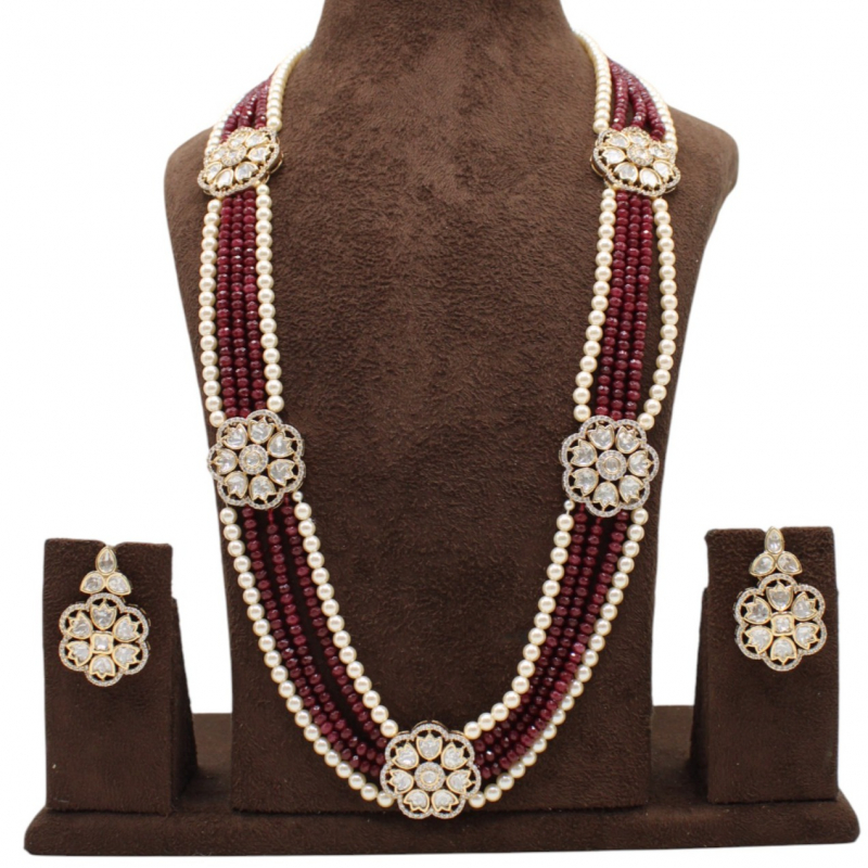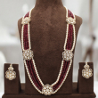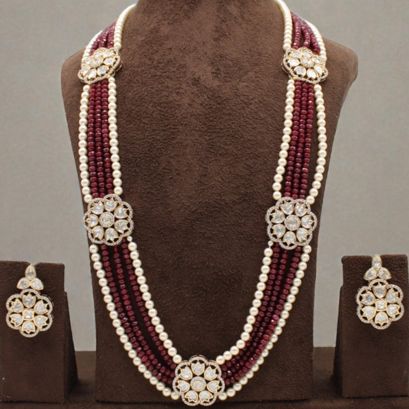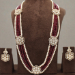 Presenting the elegant Rajwadi Meherbaan Rani Haar Set, a masterpiece inspired by royal Rajasthani heritage jewellery. This luxurious long necklace features multiple strands of deep ruby red beads beautifully paired with classic cream pearls, creating a rich and graceful contrast.