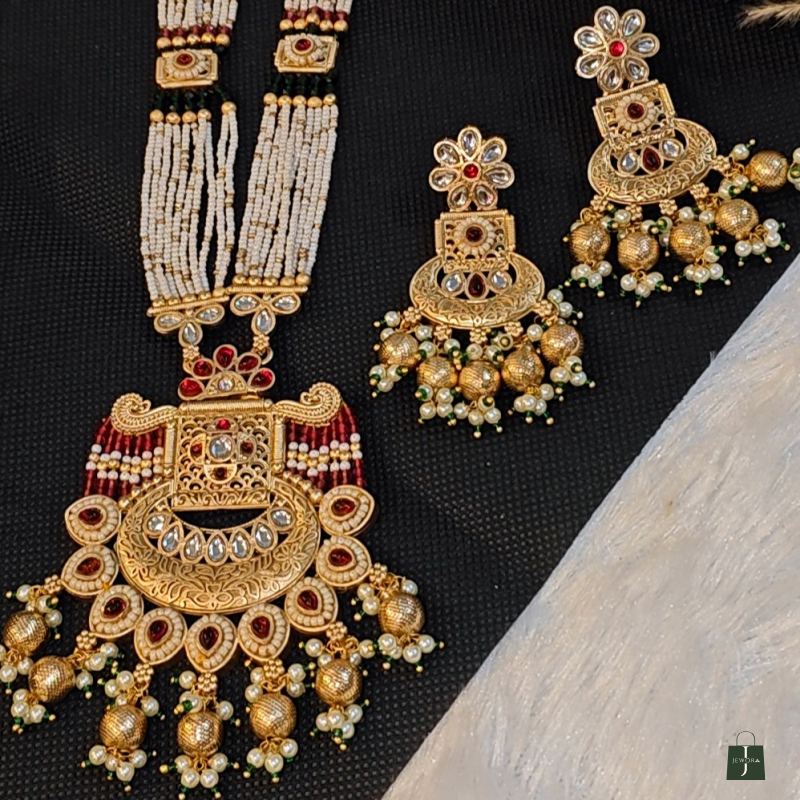 Embrace timeless tradition with this Rajwadi Style Long Mala Set from SSquare Collection. Crafted with intricate detailing, this masterpiece combines elegance and heritage — perfect for festive occasions, weddings, and cultural celebrations.