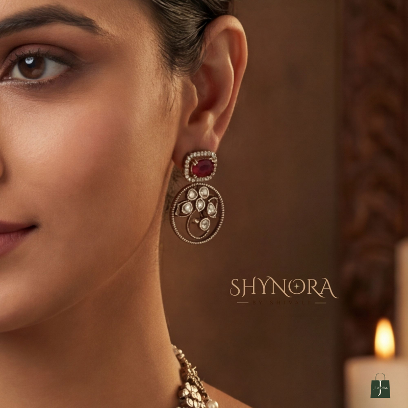 The Rangoli Navratna Coin Drop Necklace Set is a charming fusion of heritage craftsmanship and subtle color play. Designed with round antique-finish coin motifs, this necklace is accented with navratna-inspired multicolour stones—adding a graceful pop of color while keeping the look elegant and balanced.