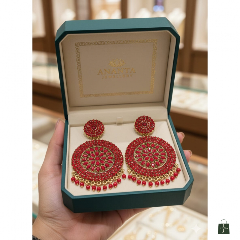 Designed to add instant glamour, these earrings pair beautifully with sarees, lehengas, and ethnic gowns. A perfect choice for women who love timeless traditional jewellery with a striking presence.