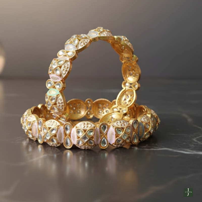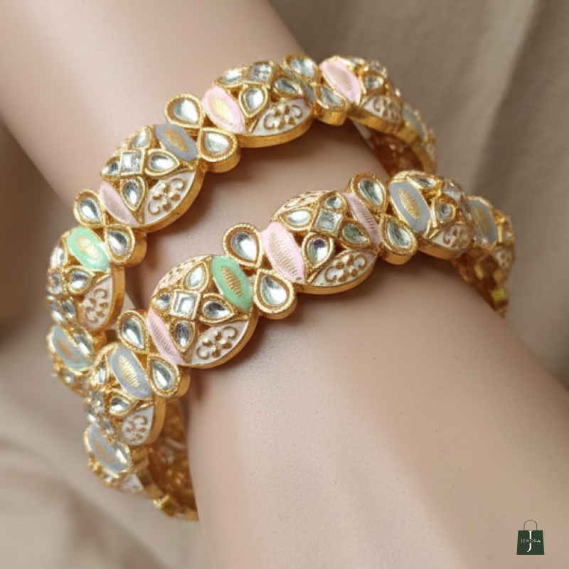 Regal Charm: Handcrafted Kundan & Meenakari Kada Bangles (Set of 2)