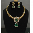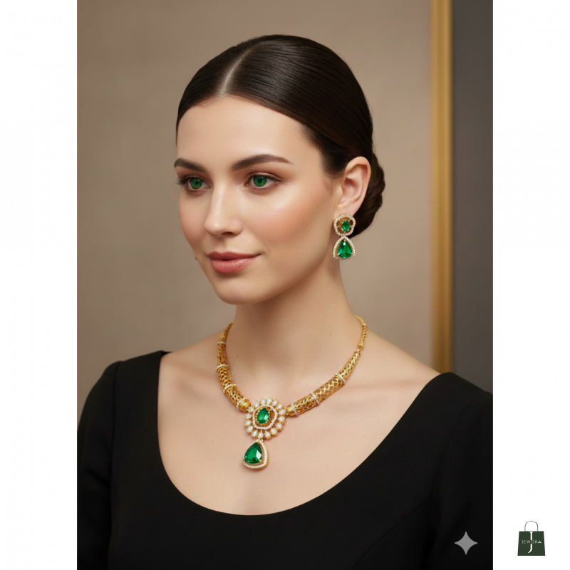 Elevate your ethnic or formal attire with this stunning and opulent gold-toned necklace and earring set. Inspired by classic traditional designs, this ensemble features intricate craftsmanship, captivating purple stones, and dazzling white accents for a truly royal look.