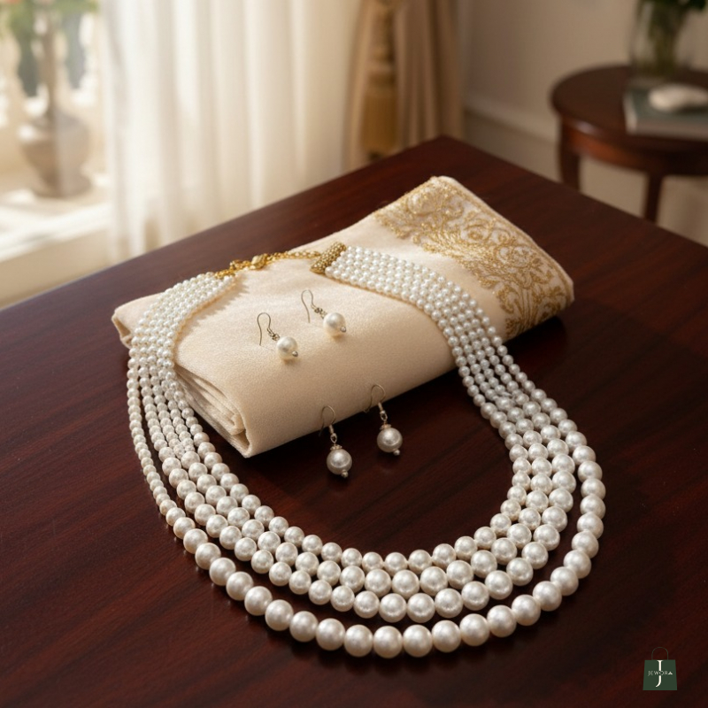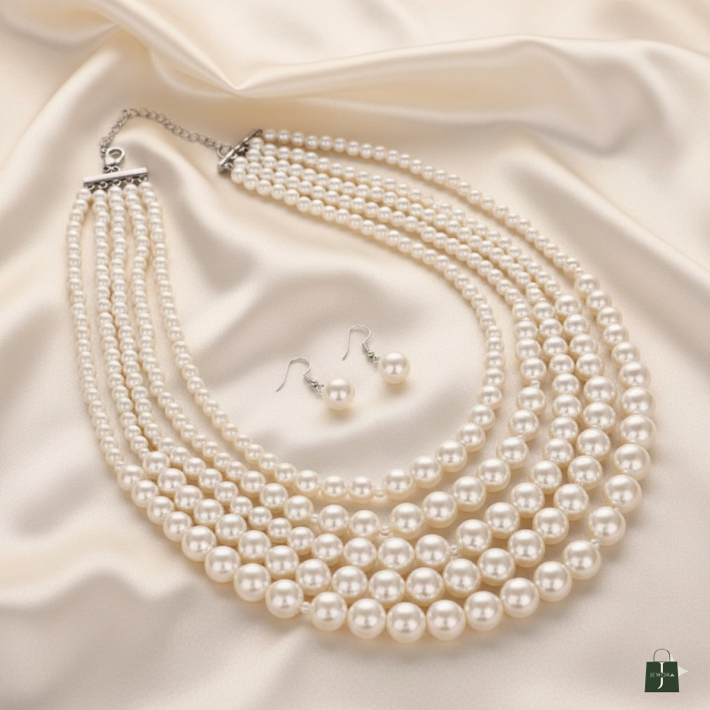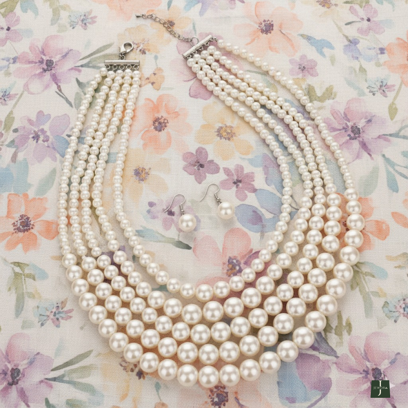 Exude sophistication and timeless elegance with the Regal Pearl Layered Necklace. Featuring multiple strands of lustrous pearls in a graceful layered design, this necklace adds a luxurious touch to any outfit. Perfect for weddings, festive occasions, or special events, itβs lightweight, stylish, and designed to make a classic statement. π€π