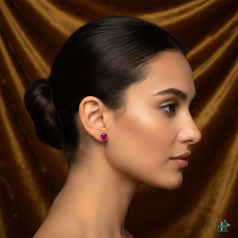 Vibrant Cushion Cut: Features large, richly colored cushion-cut ruby (or red) stones, known for their brilliance and classic shape.