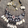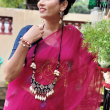 This handcrafted ethnic jewellery piece is made using rich black khadi fabric and pearl seed beads, reflecting timeless traditional artistry. must have piece with handloom or plane silk costume