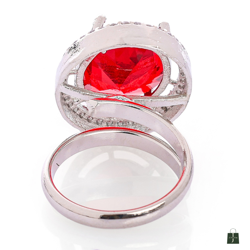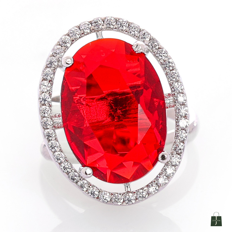 This oval shape adjustable Finger Ring made with Alloy material with rhodium plated , Crafted with a high-quality finish cubic zircon.