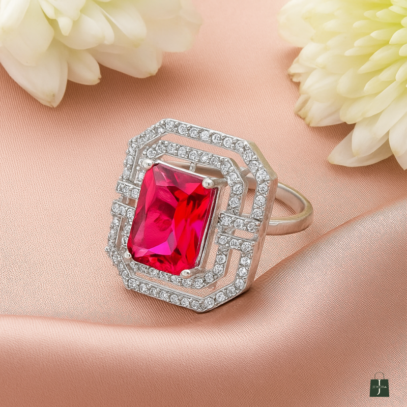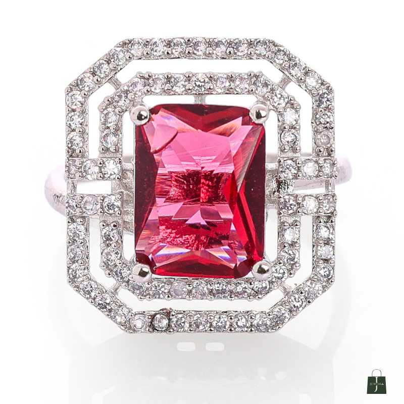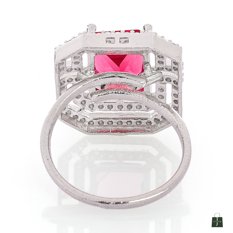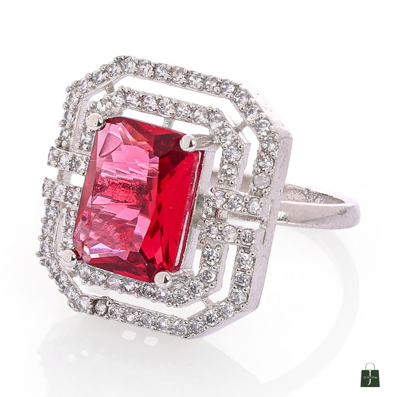 This Square shape adjustable Finger Ring made with Alloy material with rhodium plated , Crafted with a high-quality finish cubic zircon.