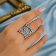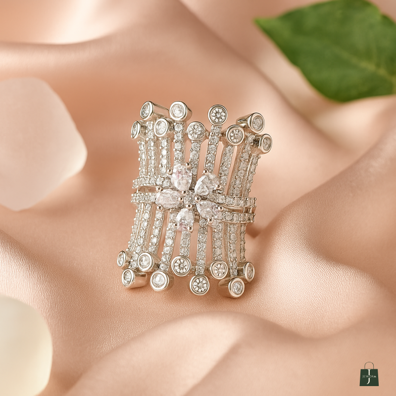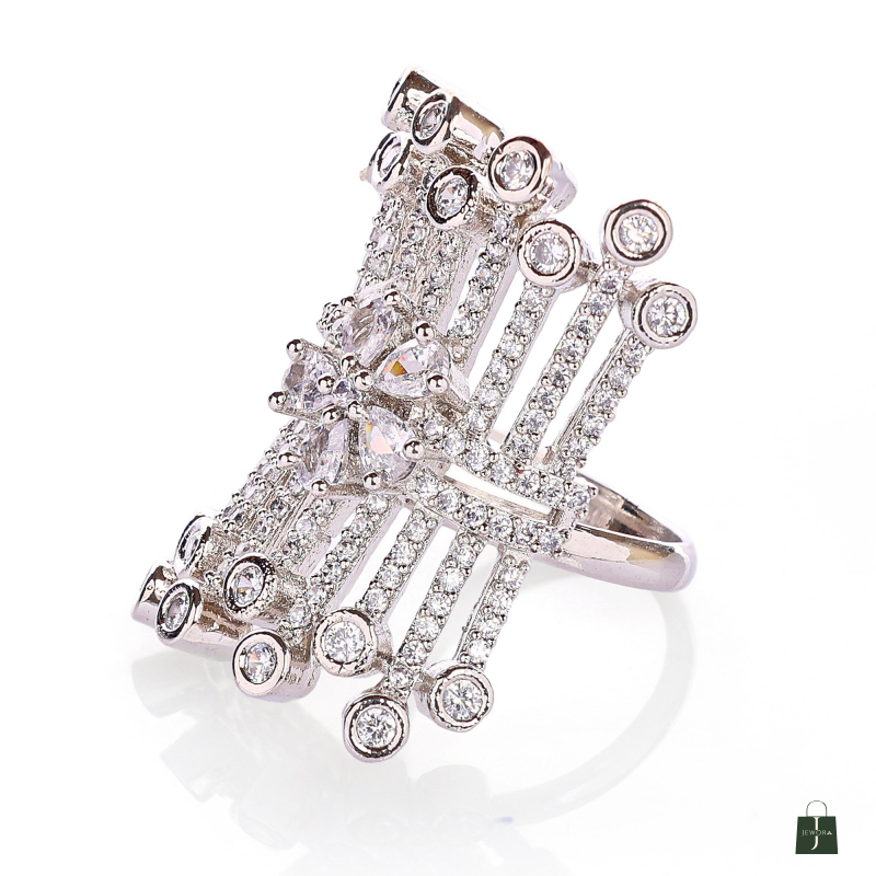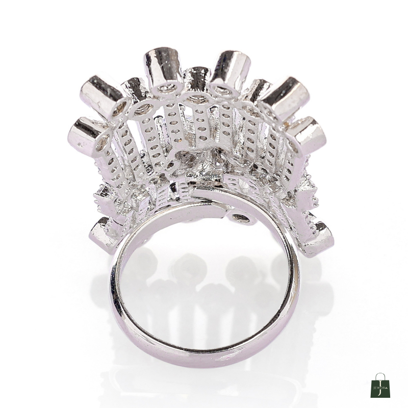 This Ring made of alloy metal with rhodium plated , Crafted with a high-quality finish Cubic Zirconia Stone