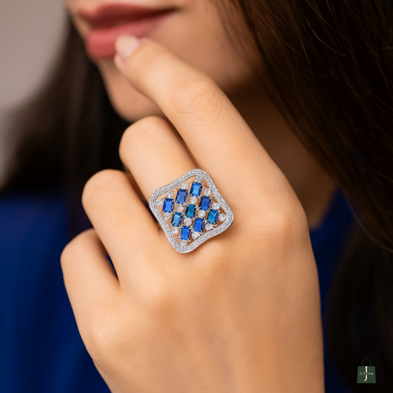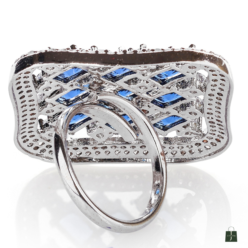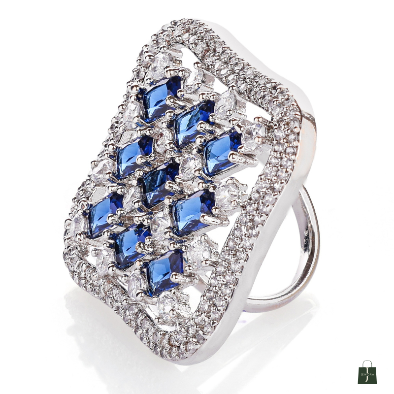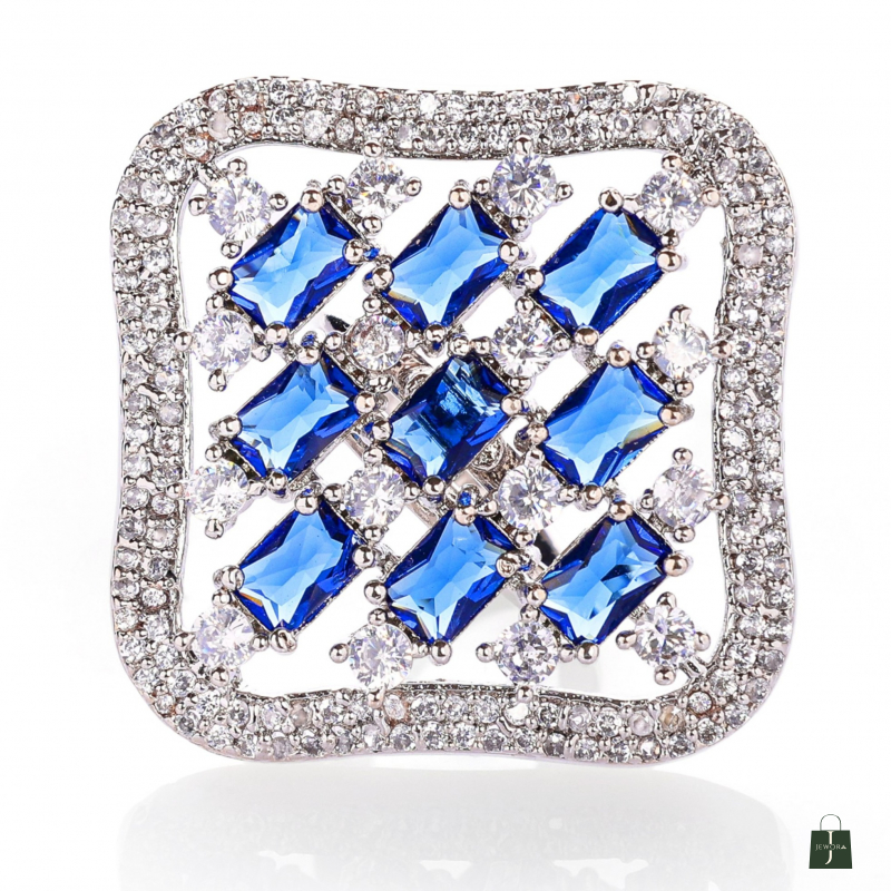 This Square shape adjustable Finger Ring made with Alloy material with rhodium plated , Crafted with a high-quality finish American diamond.
