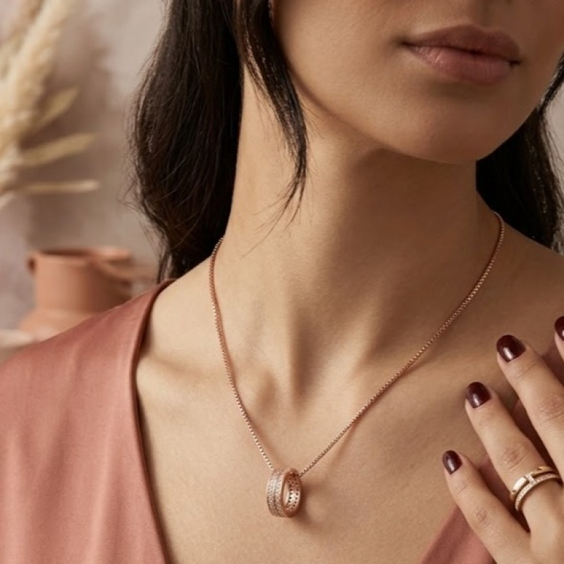 Radiant Rose Gold-Plated Circular Pendant Necklace with Diamond-Simulant CZ is the perfect blend of timeless elegance and modern design. This stunning piece, featuring a unique, open-circle design, is ideal for adding a touch of sophisticated sparkle to your everyday and special occasion outfits