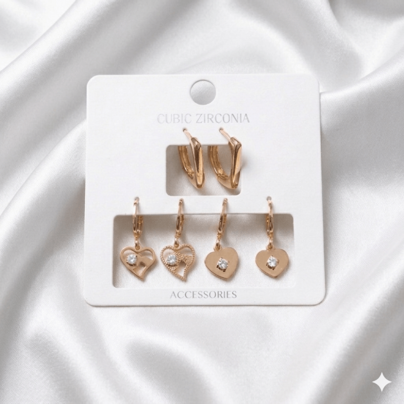 Elevate your everyday style with this elegant 3-pair rose gold polished earring set. Featuring sleek hoops and delicate heart charms adorned with sparkling cubic zirconia, this set blends minimal elegance with a hint of romance.