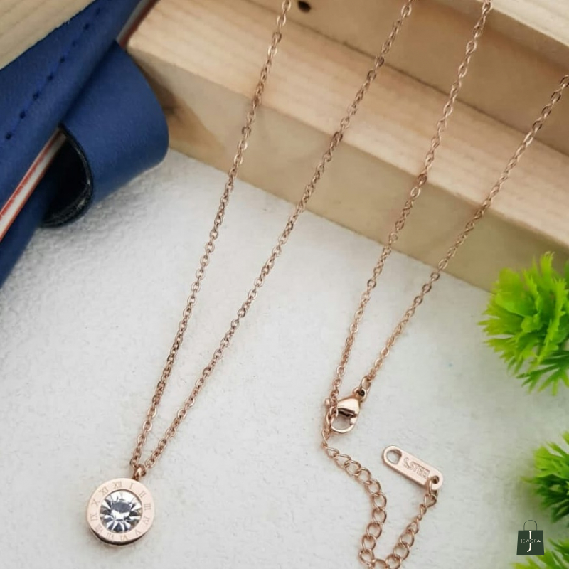 The Rose Gold Roman Numeral Crystal Solitaire Necklace is a perfect mix of classic luxury and modern minimalism. The pendant features a brilliant round crystal at the center, surrounded by a circular frame engraved with Roman numerals, symbolizing timeless beauty and elegance. Finished in a soft rose gold polish, this necklace adds a refined sparkle to both everyday outfits and evening looks. Lightweight and stylish, itβs ideal for daily wear, office styling, and gifting.