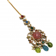 Make a graceful statement with this stunning Rose Quartz Navratna Royal Maang Tikka. Designed with a soft blush pink oval center stone, this piece radiates elegance and traditional charm. The intricate scrollwork design is beautifully enhanced with sparkling kundan-style stones and vibrant multi-colour accents inspired by Navratna artistry.