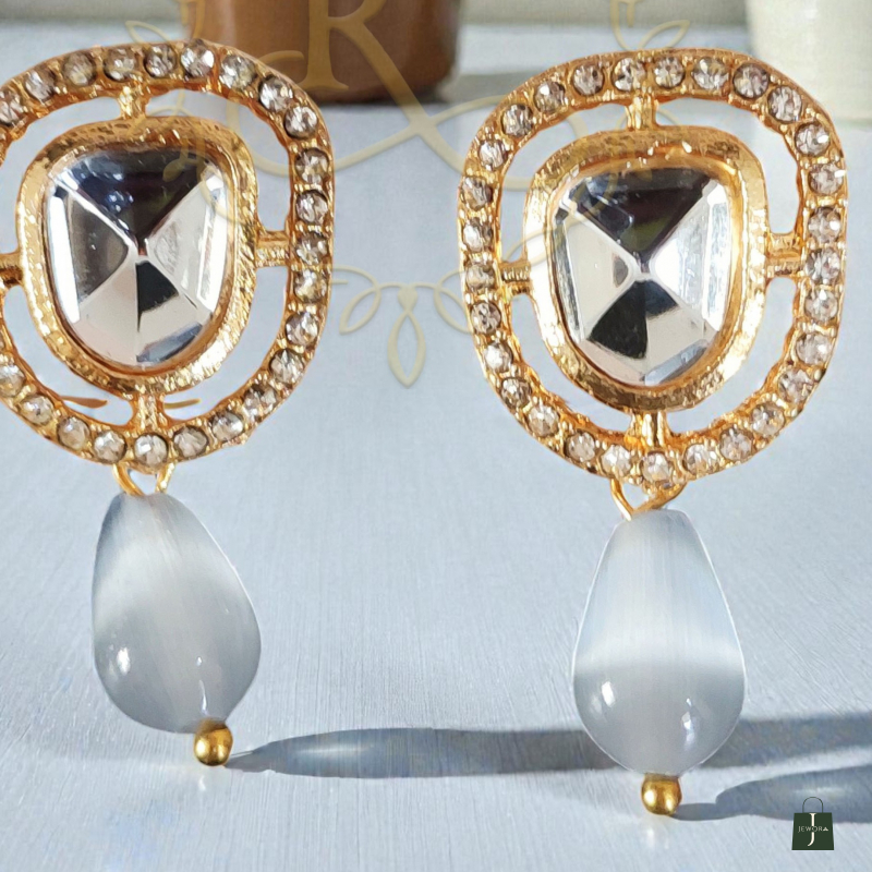 Elegant Pachi Kundan stud earrings with Monalisa drops, designed for a traditional and luxurious look—perfect for weddings and festive wear.
