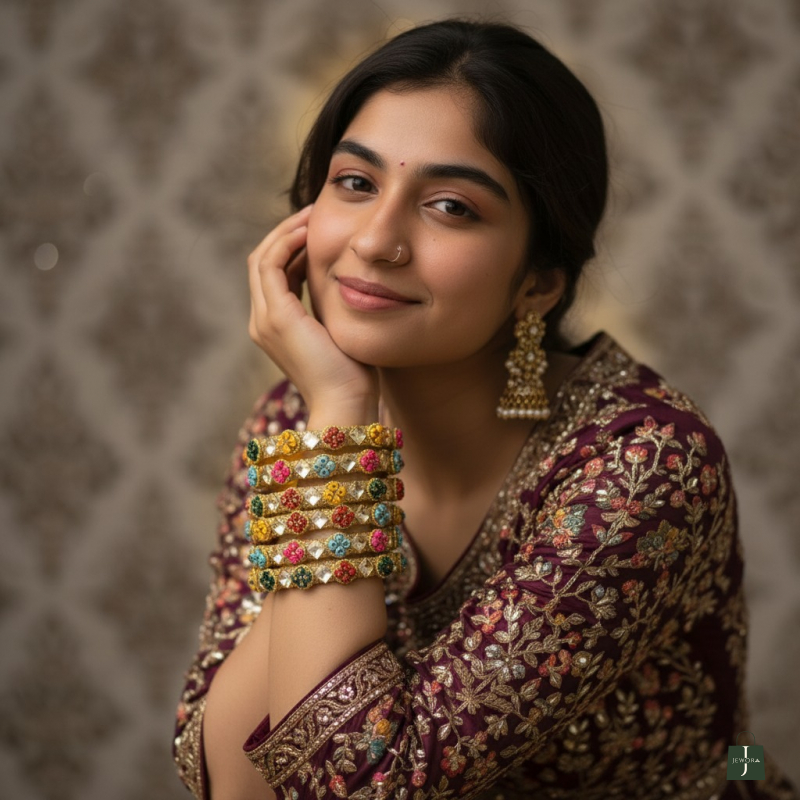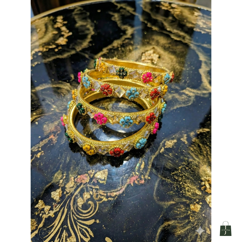 Versatile Styling: The multi-colored beadwork ensures these bangles pair seamlessly with a wide range of saree and lehenga colors.