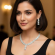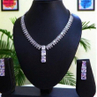 Command the room with a set designed for the modern monarch. This exquisite jewelry suite features a curated collection of premium baguette-cut crystals, meticulously arranged to capture and refract light from every angle.The necklace follows a structured, graduated silhouette that leads the eye to a triple-tiered linear pendant, mirrored perfectly by a pair of matching statement earrings. Set in a rich, polished gold-toned frame, the contrast between the "ice" of the stones and the "fire" of the metal creates a look of timeless luxury.