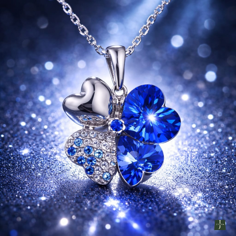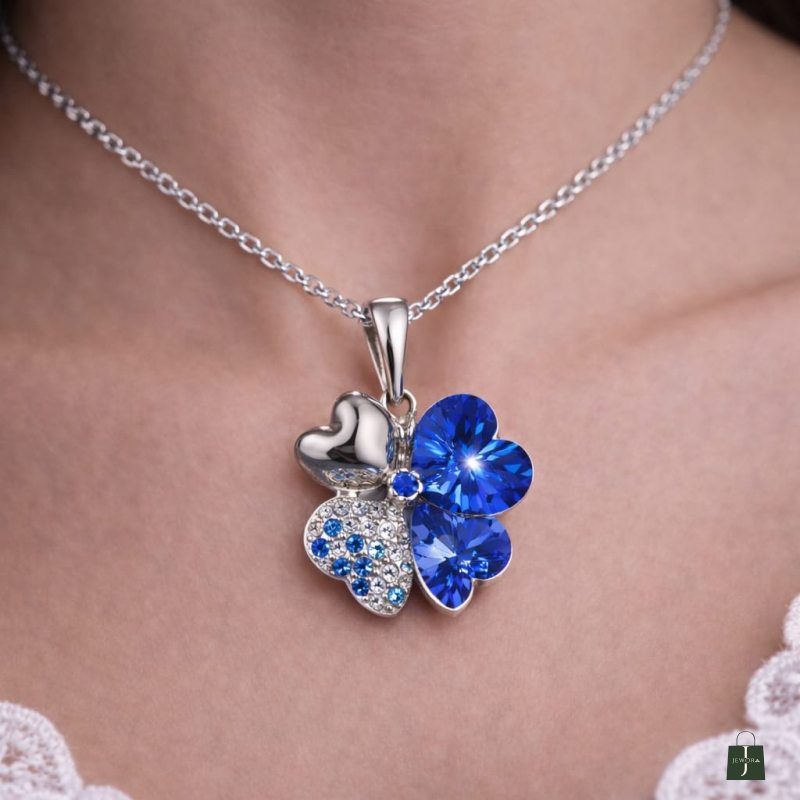Experience timeless elegance with this exquisite blue Swarovski flower pendant.