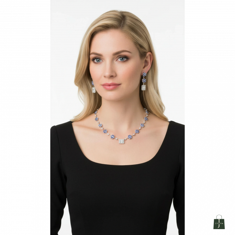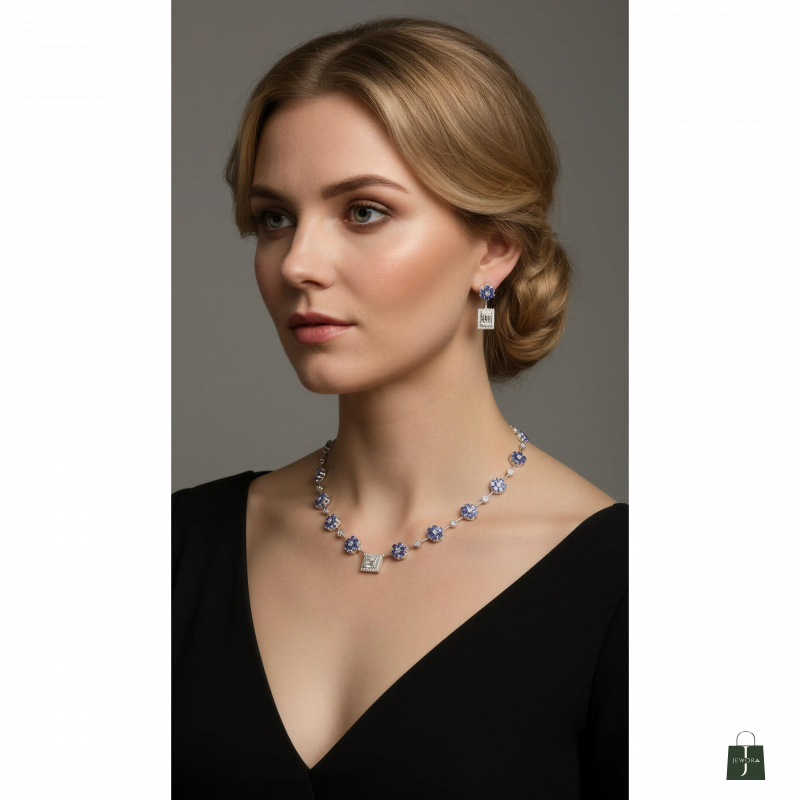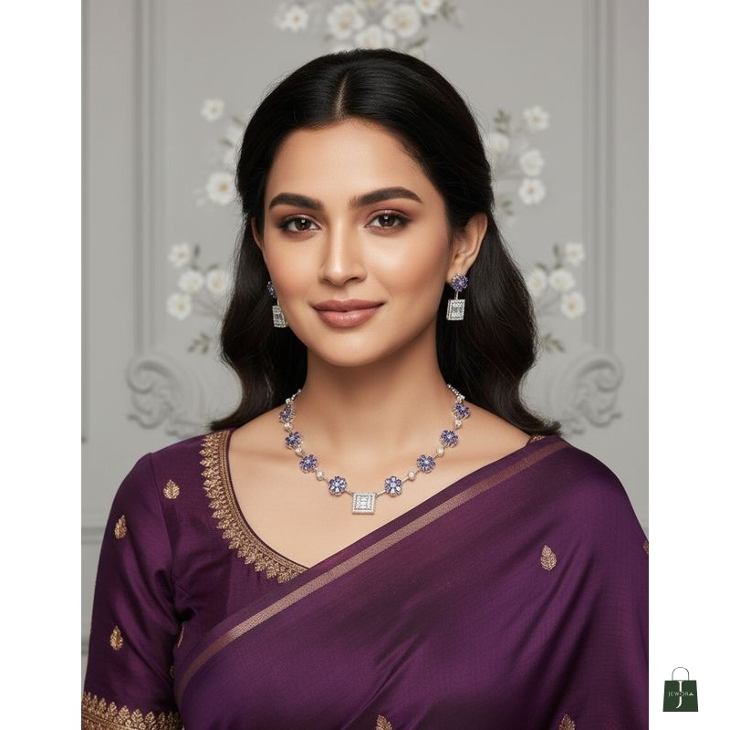 Shine wit Me American Diamond necklace and matching earrings set featuring premium sparkle, lightweight comfort and elegant design. Perfect for daily wear, parties, wedding and gifting. Make you Day Beautiful with "Shinewithme"