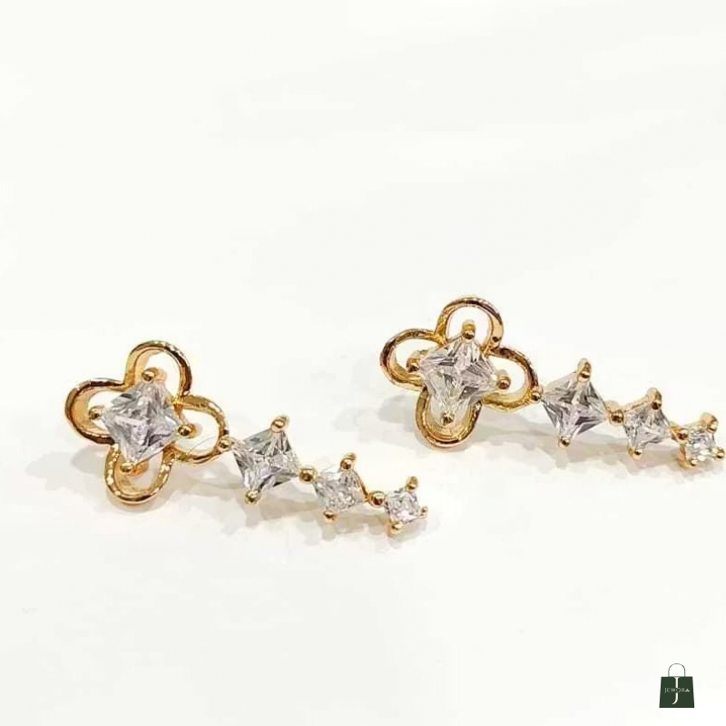 Add a touch of royal elegance to your jewellery collection with these Royal Clover Crystal Drop Earrings. Designed with a graceful four-petal clover motif, these earrings symbolize charm and sophistication. The cascading crystal drops enhance the overall brilliance, creating a stunning balance between classic design and modern glamour. Perfect for festive occasions, parties, and special celebrations, these earrings are lightweight and comfortable while offering a premium statement appearance.